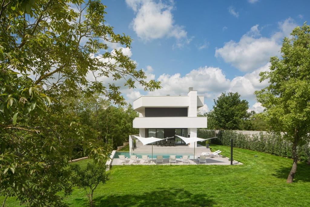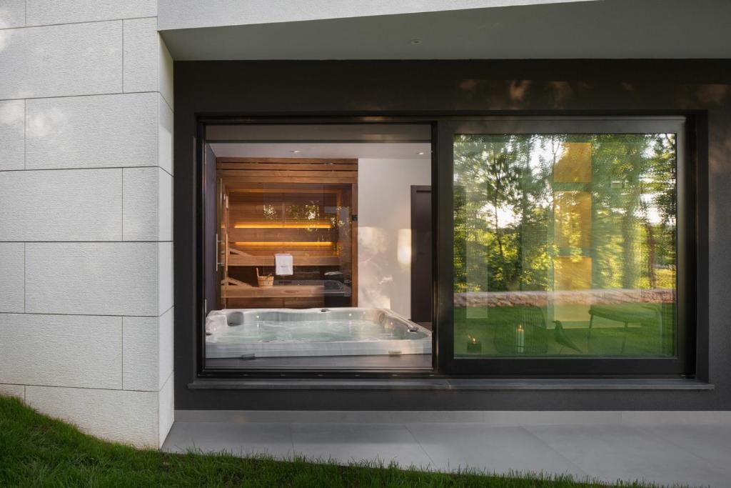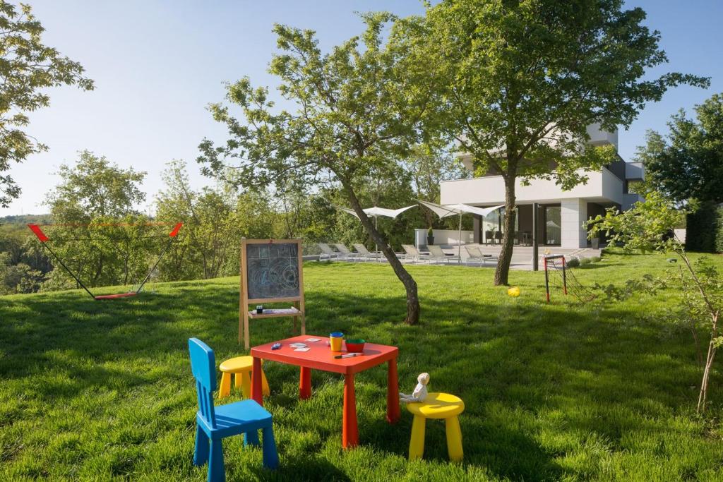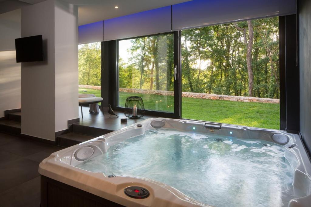 Discover the epitome of luxury at Finca 55, a newly built finca nestled in the quaint village of Vela Traba in central Istria, near Pazin. With a modern and elegant exterior and interior, this finca captivates with its urban allure and intriguing architecture. Surrounded by lush greenery, Finca 55 offers breathtaking views of the surrounding nature. Luxuriously appointed, the finca spans 433 m2, featuring four spacious and comfortably furnished bedrooms, each equipped with a double bed and its own ensuite bathroom. Two additional separate bathrooms ensure absolute comfort for guests. The ground floor boasts a spacious kitchen equipped with everything guests might need, including two refrigerators and ovens. The cellar houses a smaller kitchen with a wine cellar, catering to wine enthusiasts. In the finca's dining room, all guests can comfortably gather, while the expansive living room provides a relaxing retreat at any time of the day. The fully fenced 3400 m2 yard hosts a beautiful heated infinity pool (55 m2) and a children's pool (16 m2) for the youngest guests. Relax on poolside loungers or in the wellness area with a sauna and jacuzzi. Outdoor exercise equipment, a dining table, a cozy seating area for private relaxation, and a barbecue area are also at the guests' disposal. Finca 55 offers four private parking spaces and an electric vehicle charging station. Instead of the term 'villa,' the emphasis is on the name 'Finca.' Additional Information: Situated in the charming village of Vela Traba, near Pazin, this exquisite finca promises an unforgettable getaway. Surrounded by a green garden offering views of the lush countryside, the finca exudes peace and tranquility. Just a 15-20 minute drive away, guests can reach the beaches, coves, campsites, and tourist resorts of the western coast of Istria (Bale, Rovinj, Lim Fjord, Vrsar, Funtana, Poreč), as well as the historic towns and attractions of the mysterious and verdant central Istria (Tinjan, Pazin, Kanfanar, Žminj, Dvigrad, Motovun).