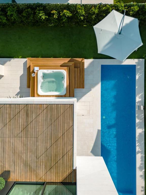 In the heart of Riviera Paklenica, Dalmatia, near Paklenica National Park, lies the beautiful five-star Finca Calma II in Starigrad. This contemporary oasis of elegance and luxury features an outdoor swimming pool, sun loungers, and sun umbrellas for a relaxing holiday. After a refreshing dip, guests can unwind on comfortable sun loungers or enjoy the summer sun. The finca offers a jacuzzi for evening relaxation, and a grill for preparing delicious meals. Guests also have access to a private gym. The concierge team can organize various luxury activities, including day trips on a luxury yacht, private chef services, and SPA treatments. A damage deposit of EUR 500.00 is required upon arrival, refundable at check-out after a property inspection.