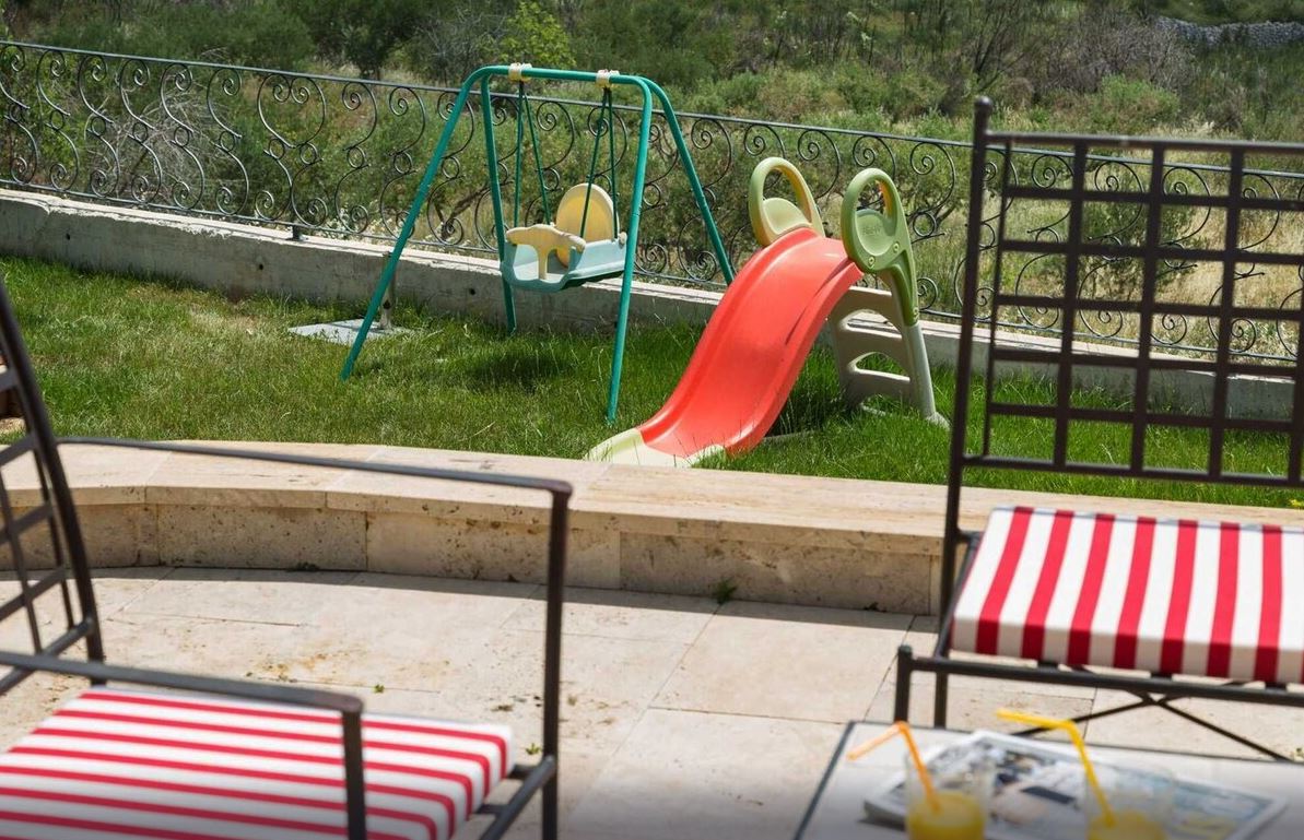 Unique Mediterranean finca on 16,000 m² surrounded by olive trees and a vegetable garden, offering stunning views of the valley and the sea. Three levels occupy the 350 m² interior, allowing more than enough space for a couple of families or groups of friends to enjoy privacy as well as making memories together. On the ground floor is a charming fully equipped kitchen with a central island and a separate dining room, as well as a library and two of the bedrooms and two bathrooms. On the first floor is the third bedroom, also a separate apartment with an additional living room, a bedroom with a bathroom and an extra bed in the gallery. Each room has access to a terrace or a balcony with garden furniture. Heated outdoor pool, plenty of outdoor seating, a gym, children’s playground, indoor and outdoor BBQ are also provided for your enjoyment. Welcome to Finca Olive Grove.