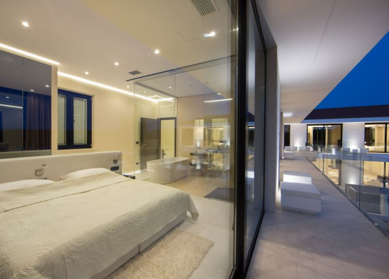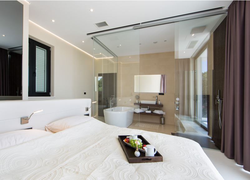 First-Floor Opulence: Bedroom 1: Opulent Master Suite with Double Bed, TV, Heating, AC, Bathroom with Shower and Tub, Terrace boasting Sea Views Bedroom 2: Double Bed, TV, Heating, AC, En-suite Bathroom with Shower and Tub, Terrace with Sea Views Bedroom 3: Double Bed, TV, Heating, AC, En-suite Bathroom with Shower and Tub, Terrace with Sea Views Bedroom 4: Double Bed, TV, Heating, AC, En-suite Bathroom with Shower and Tub, Terrace with Sea Views Bedroom 5: Two Single Beds (Convertible into a Double Bed), Heating, AC, En-suite Bathroom with Shower and Tub, Terrace with Sea Views
