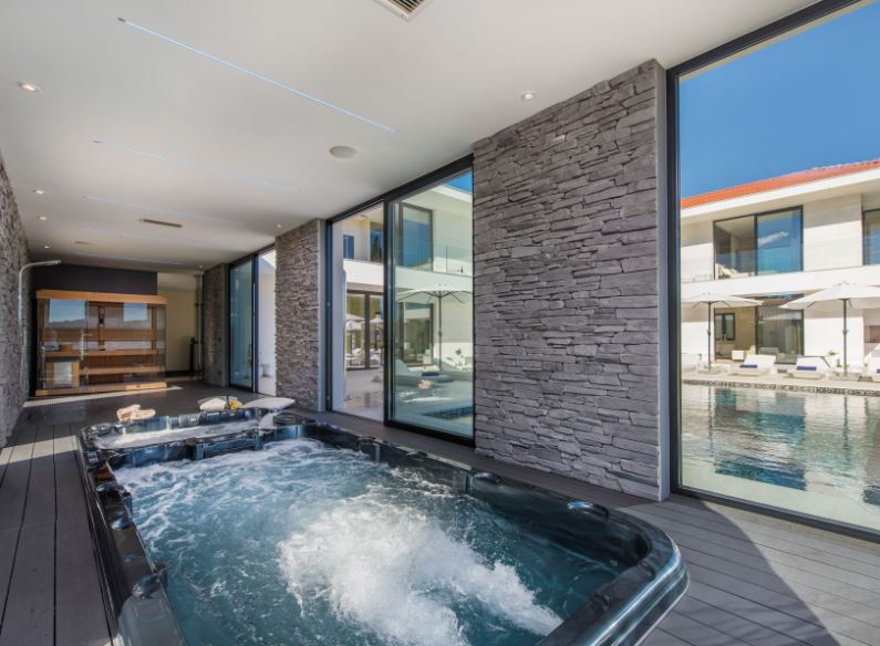 Stretching over 10 km, the channel is enforced by major cliffs, crafting an idyllic and private sanctuary. Ground Floor Bliss: Enchanting Garden Oasis Refreshing Outdoor Pool and Shower State-of-the-Art Gym and Spa (Indoor Pool, Jacuzzi, Shower, and Sauna) Billiards Room with Cozy Lounge and TV Dining Room featuring a 10-seat Banquet Table Fully Equipped Kitchen with a Stylish Bar Living Room with Cutting-edge Entertainment System and TV Alfresco Kitchen with BBQ and a 10-seat Dining Table Expansive Sun-soaked Terraces adorned with Sunbeds Each space on the ground floor seamlessly connects to nature, providing mesmerized ocean views.