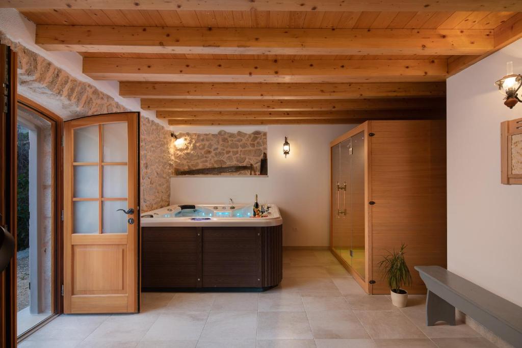 Finca Fulmin is situated in the village of Malo Grablje, just 1.5 km from Milna Beach, offering an outdoor pool, fitness center, and a 24-hour front desk. In addition to its private pool, this property features gardens and barbecue facilities. Free WiFi and private parking are available on site.